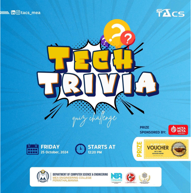 TACS Day '23, an annual event organized by the Technical Association for Cyber Streams (TACS) at MEA Engineering College. TACS Day '23 aims to provide an engaging and informative platform for students in the Department of Computer Science & Engineering to showcase their technical and non-technical talents, foster innovation, and strengthen the sense of community within the department.Report